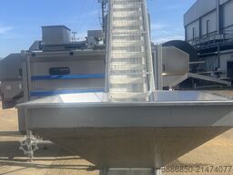 Machine ready for operation, year of manufacture 2014. The machine is designed for peeling hard root vegetables such as potatoes, beetroot, carrots, and parsley root. Capacity is approximately 1200 kg/h depending on the product.